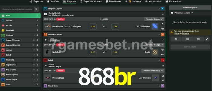 A aposta 868br oferece aos jogadores a experiência mais conveniente de apostas em eSports!
